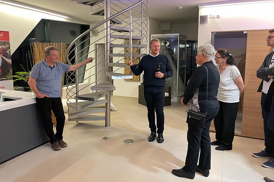 Bei dieser Betriebsbesichtigung sind wir nicht nur Gast, sondern auch Gastgeber. Harald Kogler ist nicht nur Obmann vom Wirtschaftsbund in Gramastetten, sondern hat vor 21 Jahren die Firma Delfin Wellness gegründet. Ich, Renate Kogler, schreibe nicht nur für den Wirtschaftsbund in Gramastetten diverse Berichte, sondern bin seit über 17 Jahren bei Delfin Wellness für das komplette Marketing verantwortlich. Seit 10 Jahren wohnen wir in Gramastetten und freuen uns sehr, dass viele Mitglieder vom WB der Einladung zur Betriebsbesichtigung gefolgt sind.