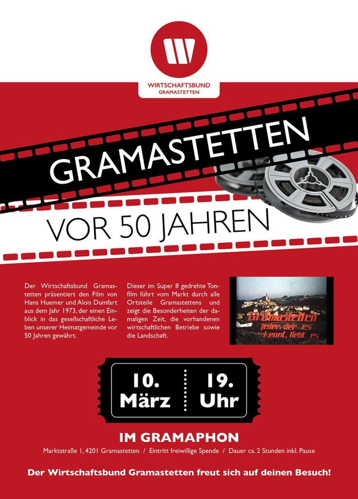 Der Wirtschaftsbund Gramastetten präsentiert den Film von Hans Huemer und Alois Dumfart aus dem Jahr 1973, der einen Einblick in das gesellschaftliche Leben unserer Heimatgemeinde vor 50 Jahren gewährt.