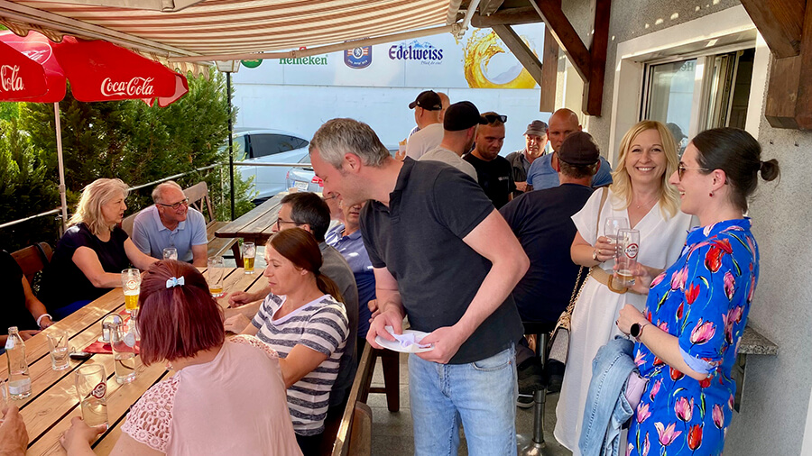 Der Imbissstand „Per Du“ bot die perfekte Gelegenheit, sich bei bestem Wetter in gemütlicher Atmosphäre auszutauschen und neue Kontakte zu knüpfen. Der Obmann und sein Vorstand waren von der großen Teilnehmerzahl und dem Interesse am Verein begeistert. Besonders erfreulich war, dass sich an diesem Abend drei neue Mitglieder für den Verein entschieden haben und sich alle sichtlich wohl gefühlt haben. Es war ein gelungener Abend voller positiver Energie und wertvoller Kontakte, der den Zusammenhalt und die Stärke des Wirtschaftsbundes unterstrich.