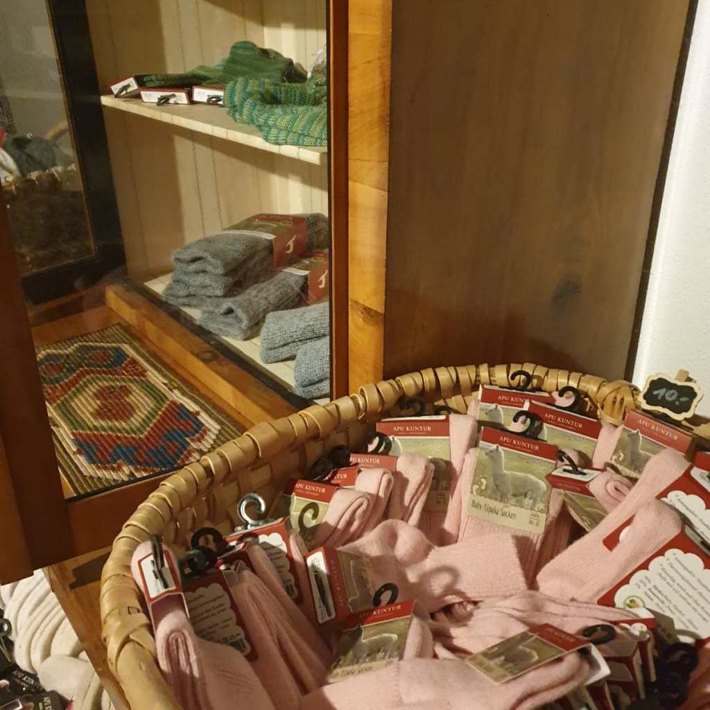 Feinste Alpaka-Waren wie Hauben, Socken, Schuheinlagen, Strickwolle in vielen Farben, lustige Mitbringsel uvm. bietet unser Hofladen. Nicht zu vergessen: unser Superdünger aus Alpakamist. Nebenbei die lieben Alpakas im Stall bewundern.